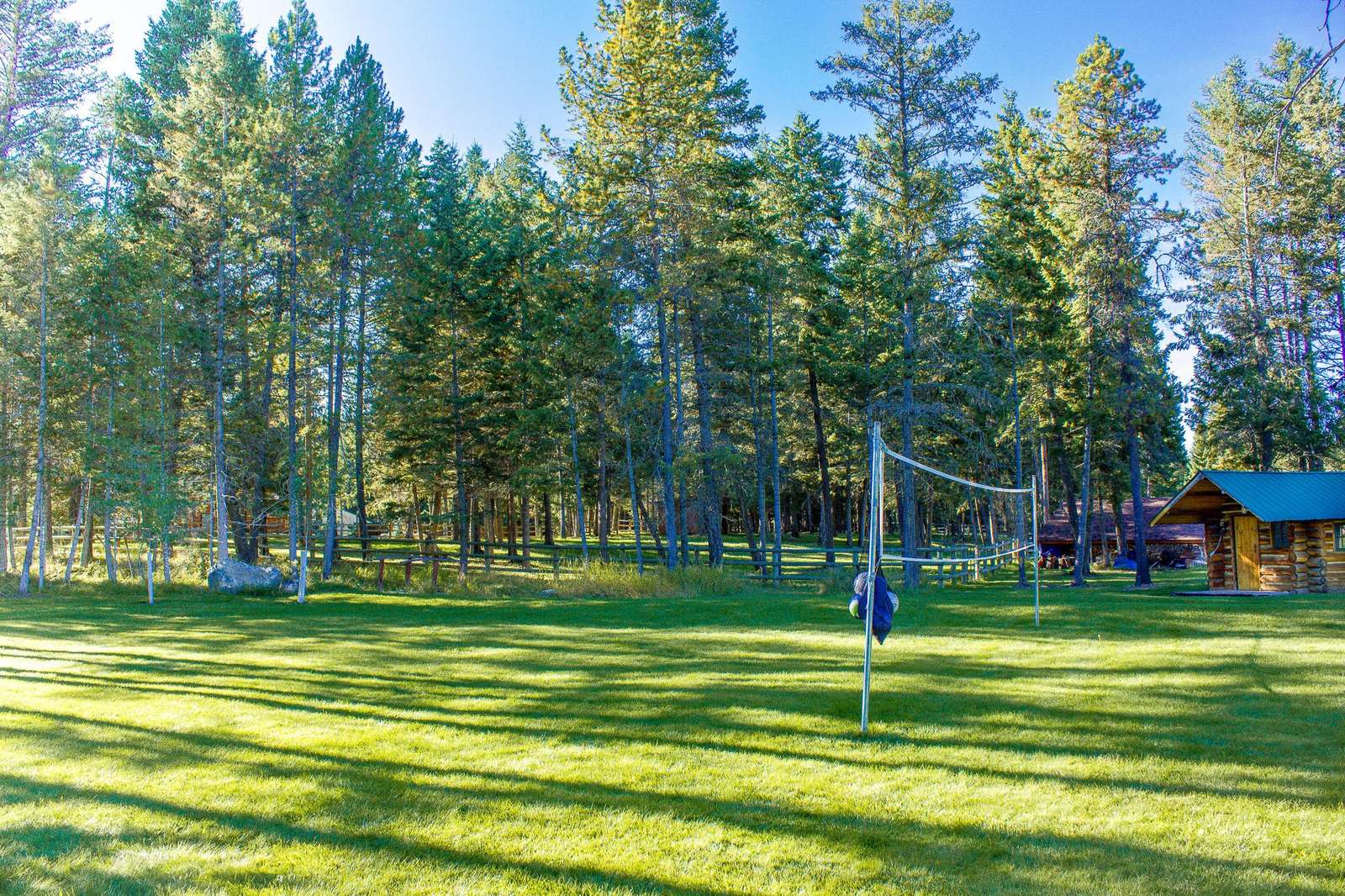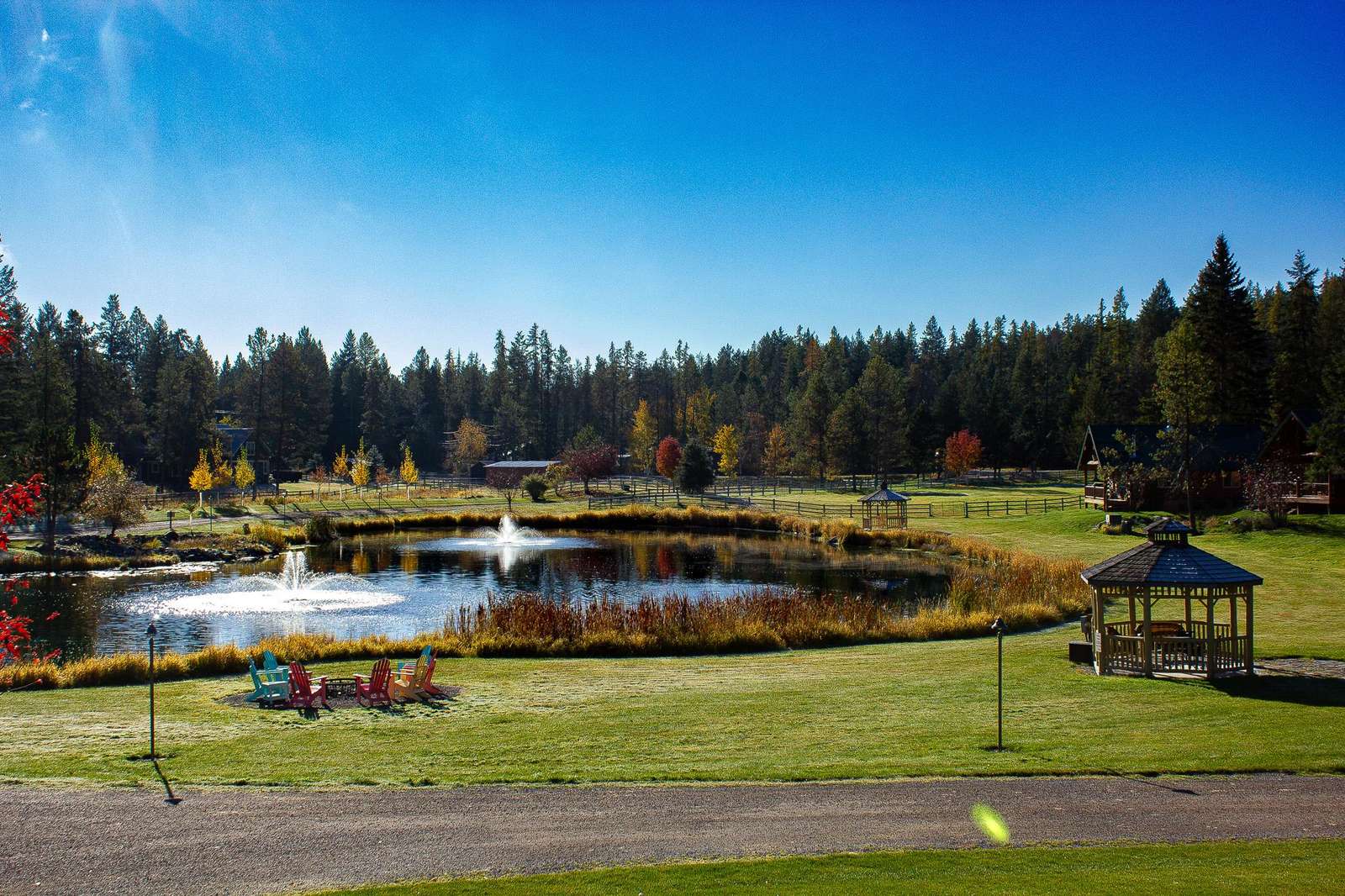 This cabin is part of the beautiful Haymoon Resort. With 2 ponds and 15 acres of incredibly landscaped lawn, pasture, garden, and wooded areas, the property is absolutely gorgeous. There are several lodging options on the resort, however each one is private enough that you don't feel like you are sharing the space with other people. They are all close enough though, that if you have a large group that wants to spread out, you are all on the same property! All of our cabins are clean, cozy, and well stocked. You will feel at home the moment you walk in. The property is large with lots of room to play outside in both summer and winter! One of the biggest comments that we get (and we completely agree!) is that our property is in the perfect location. We are centered between Whitefish, Kalispell, and Columbia Falls.