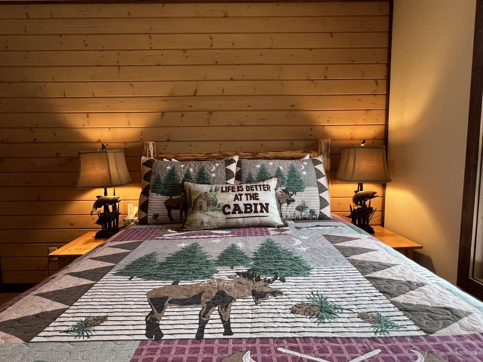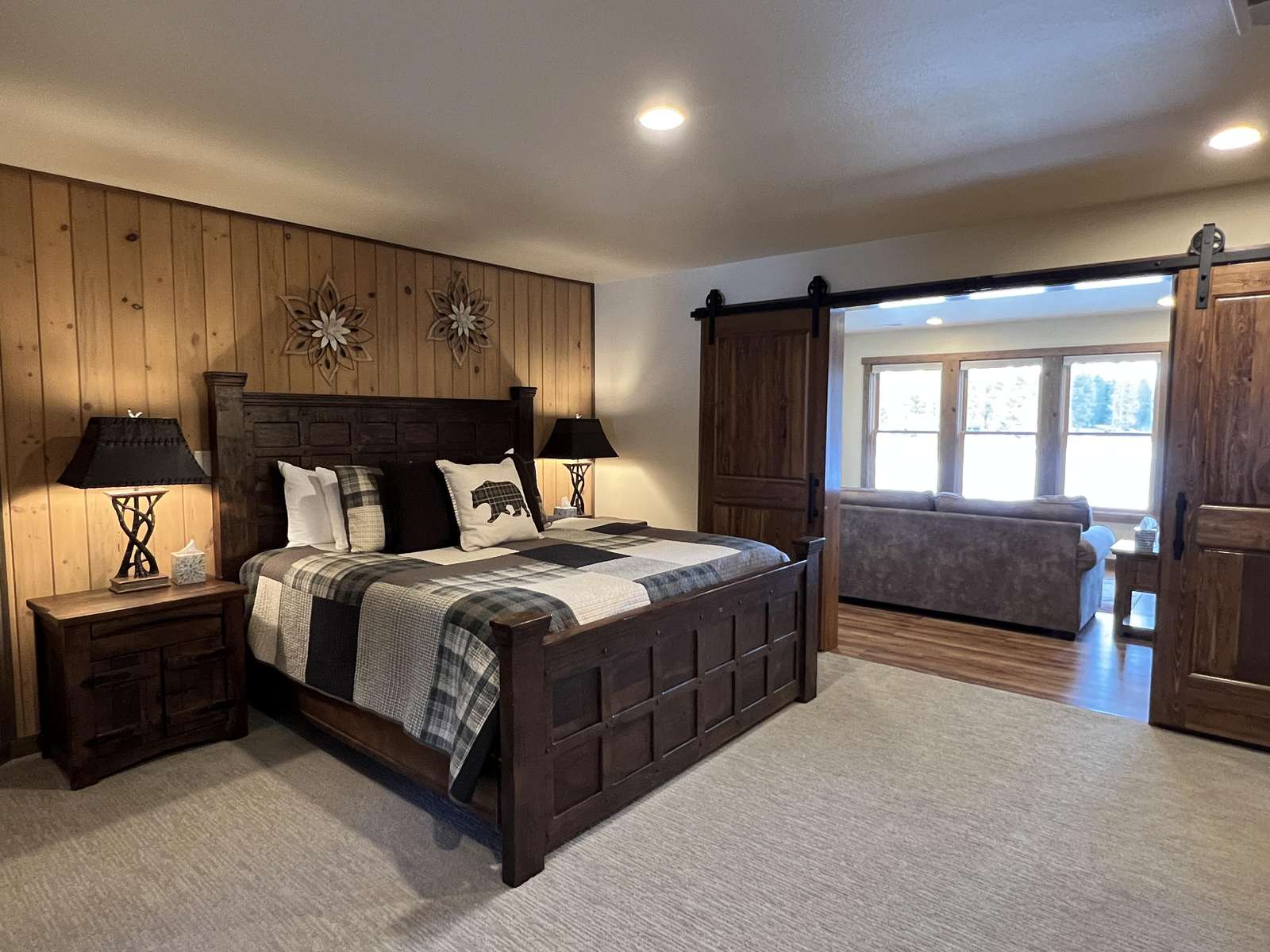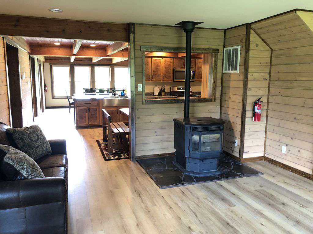 Our Flowermoon Lodge is a 5 bedroom, 3 bathroom house, equipped with brand new washer/dryer and appliances. This unit has been completely remodeled, so everything is brand new! Exquisitely designed, the house has 4 bedrooms with queen sized beds, and a master suite with a king sized bed. There are also 4 queen sized sleeper sofas and a day bed throughout the house allowing it to accommodate up to 18 people. With a huge kitchen, full sized refrigerator, oven/stove, dishwasher, and microwave, you are able to cook full meals if you would rather not go out. The unit overlooks a large pond and pasture area and has a large deck that wraps around half the house if you would like to sit outside and enjoy the atmosphere. The deck is also great for BBQing. The property itself is 15 acres with 2 ponds, lots of lawn space, trees, wooded areas, and pasture. There are multiple housing options on the property ranging from 5 bedroom cabins to a 1 bedroom handicap accessible apartment if you would like to rent several units together. Please don't hesitate to reach out with questions!