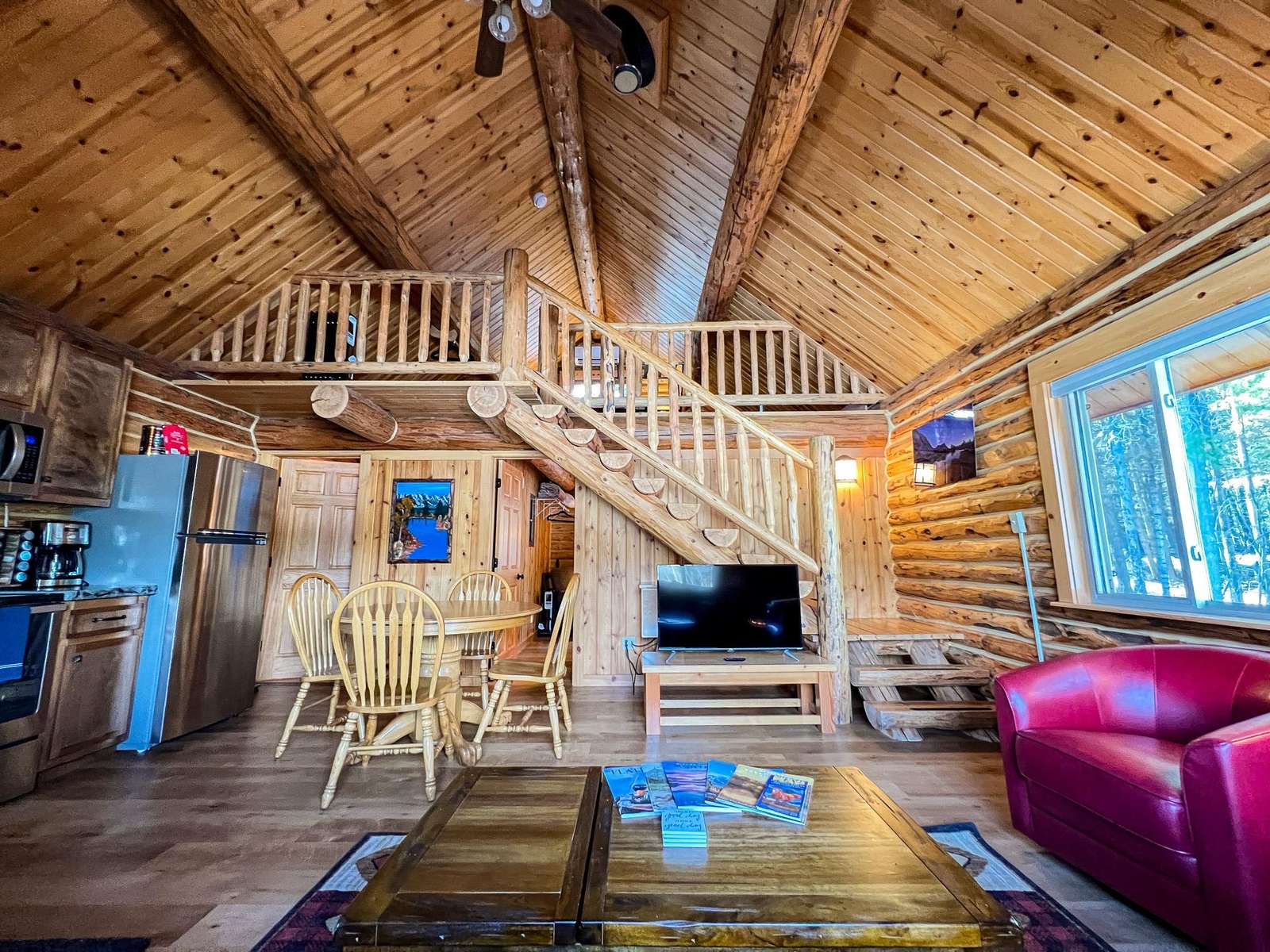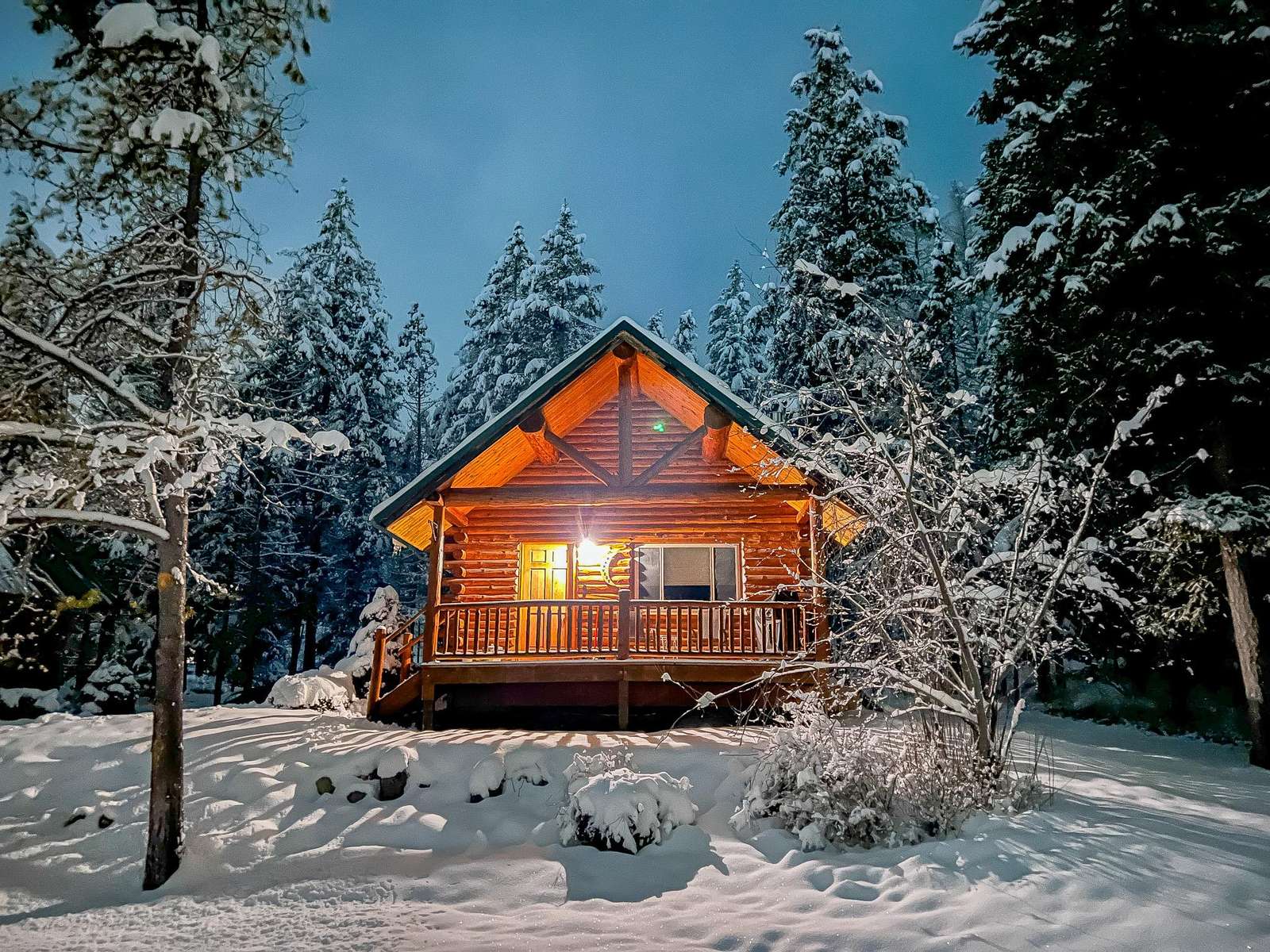 Cozy cabin with fireplace and Jacuzzi tub. Equipped with air conditioning. Well stocked, full kitchen, Weber Gas Grill, comfy beds, smart TV, and 15 acres . Very centrally located to Glacier National Park, Golf, Downtown, Lakes, Airport, and more!