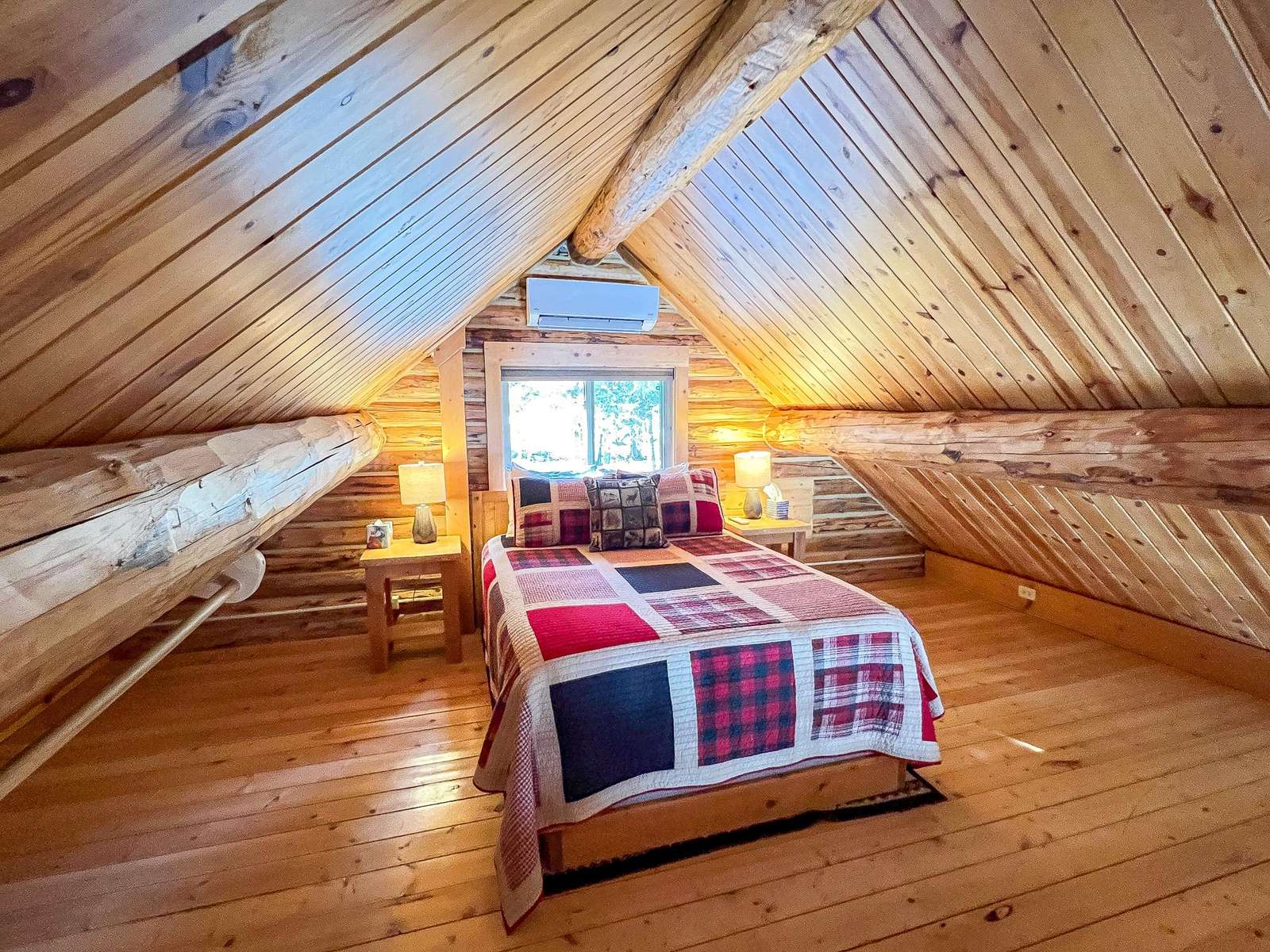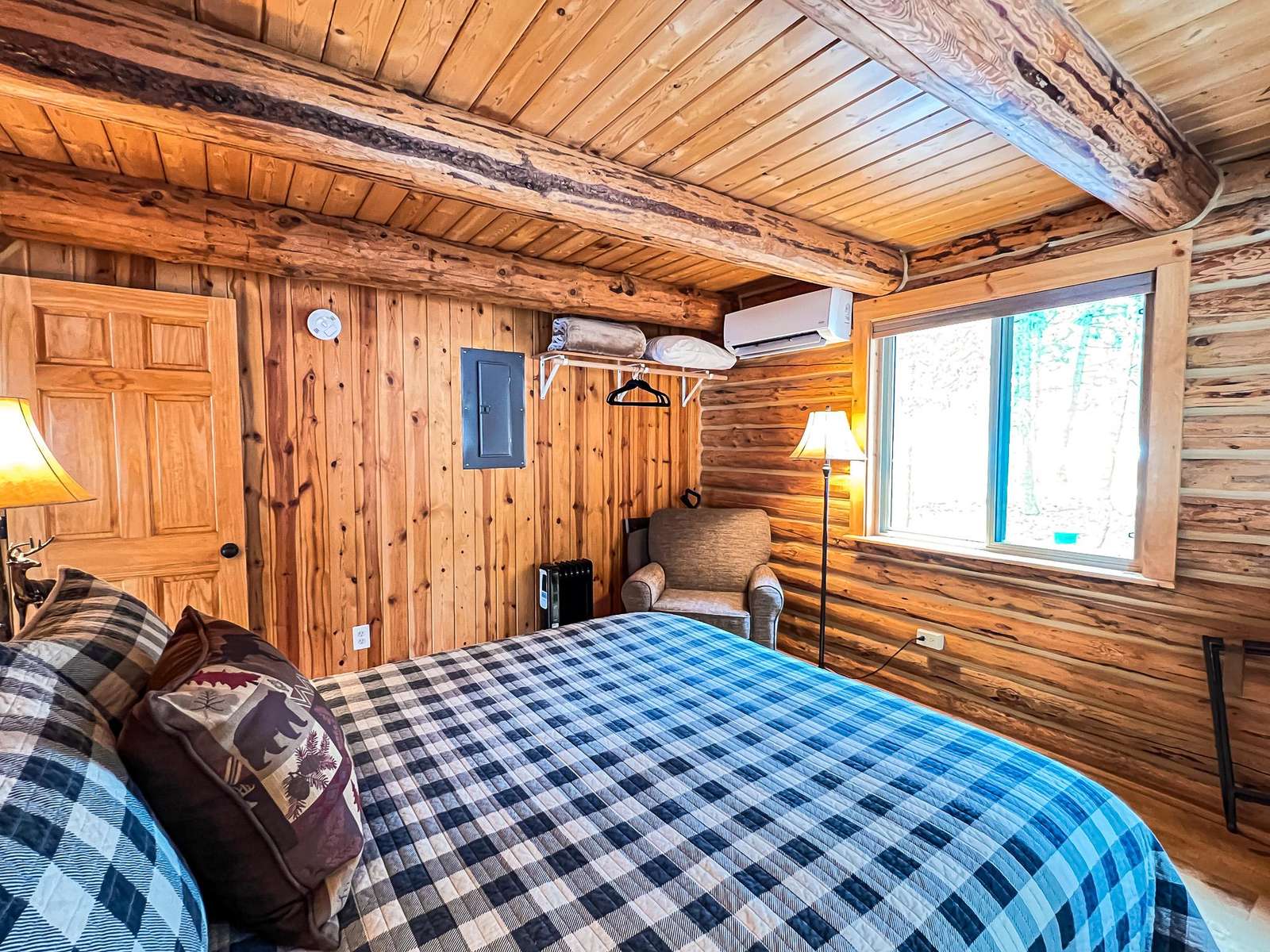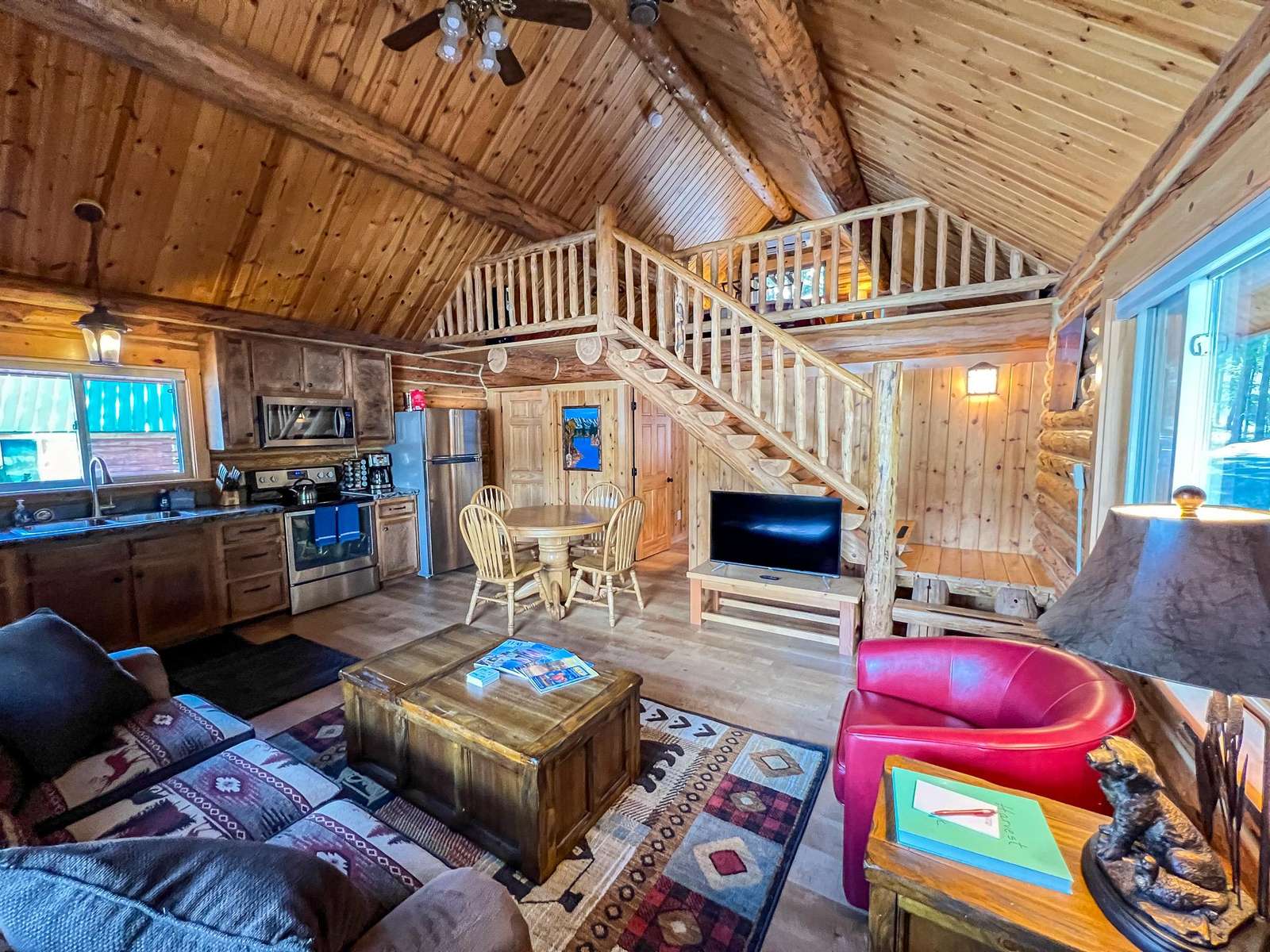 Beautiful cabin overlooking the pond and horse pasture. 1 bedroom with queen sized ben and open loft upstairs with a second queen sized bed. Both the bedroom and loft have top of the line queen sized mattresses. There is a full sized sleeper sofa in the living room with very comfortable memory foam mattress. Rent alone or with any of our other lodging options on the property.